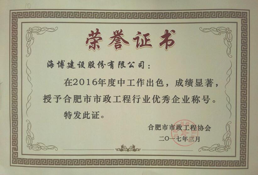 在一年一度的合肥市建筑業(yè)優(yōu)秀企業(yè)評選中,我單位經(jīng)過市建委、市建筑工程協(xié)會的層層評比,最終獲得合肥市建筑業(yè)2016年度“優(yōu)秀施工總承包企業(yè)”及“優(yōu)秀監(jiān)理企業(yè)”雙項榮譽...
