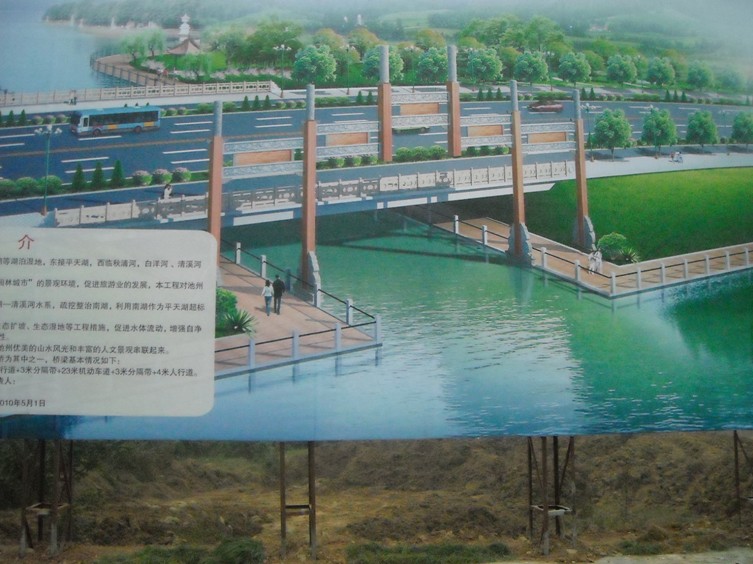 工程建成后,將打通平天湖、齊山湖、清溪河三大水系。通過水系貫通將“一城五區”組團有機連接起來,有效整合景觀資源,進一步提升池州山水園林城市的品味,打造“城在山水中,山水在城中”的城市與山水相交融的獨特景觀。