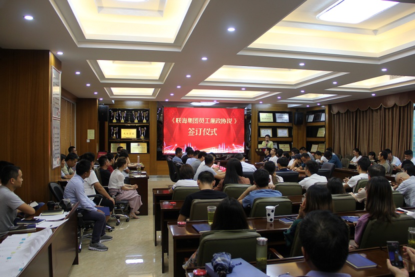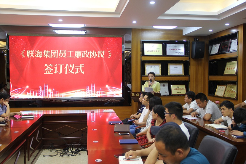 為加強集團廉政建設,嚴肅工作作風,構建誠信體系。7月12日,集團公司舉行了員工廉政協議簽訂儀式,集團董事長、各版塊分管領導等全體聯海同仁分別簽訂了《聯海集團員工廉政協議》。
