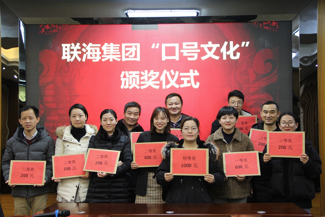 近期,集團公司開展了《關于聯海集團“口號文化”征集大賽的通知》活動,經過兩次征選、全員投票的方式,評比出特等獎、一等獎、二等獎、三等獎共計11條獲獎口號。并于2019年12月25日下午17:00由發展戰略執行中心組織了頒獎儀式,對獲獎口號的部門給予表彰和現金獎勵。